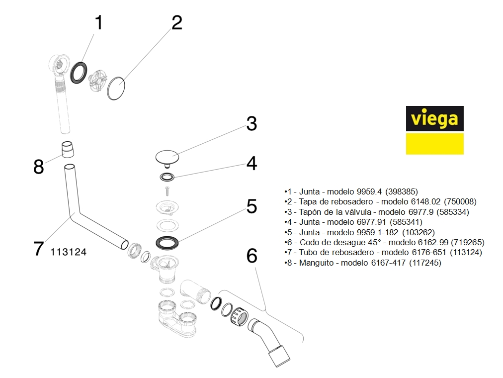 VIEGA VALVULA CLICK y REBOSADERO PARA BAÑERA