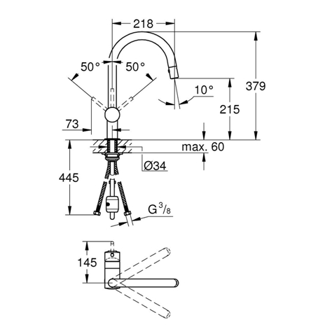 MONOMANDO COCINA CAÑO EXTRAIBLE MINTA GROHE