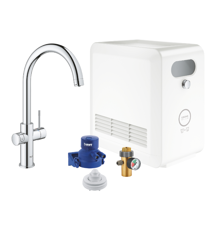 El filtro GROHE Blue, la botella de CO2 y el cartucho de limpieza no están incluidos en la entrega y deben pedirse por separado.