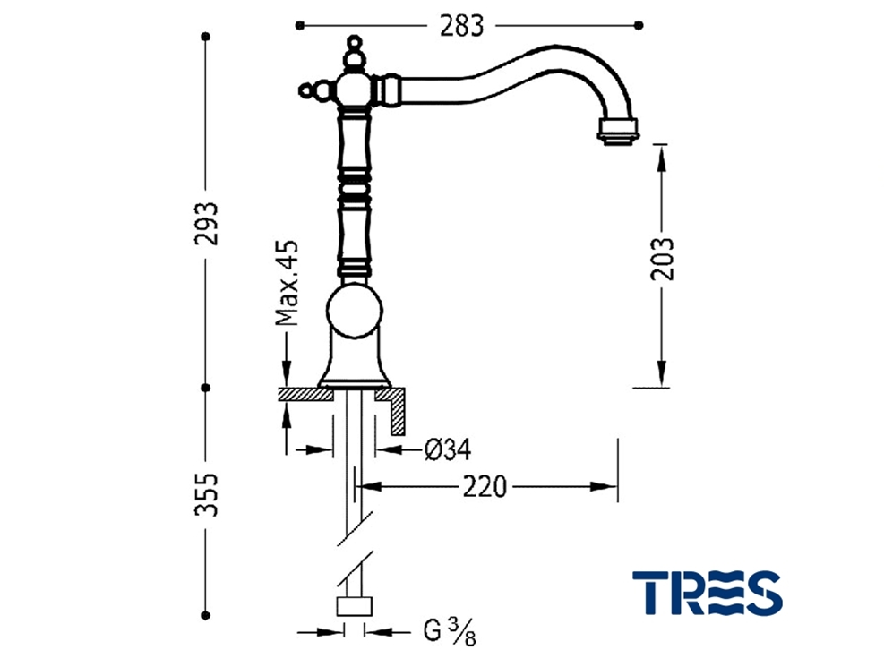 MONOMANDO COCINA CLASIC TRES GRIFERIA Ref.24234101AC