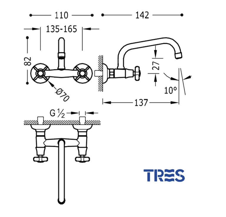GRUPO FREGADERO PARED CLASIC TRES GRIFERIA
