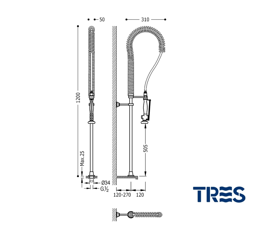 DUCHA EXTRAIBLE PARA COCINA INDUSTRIAL TRES Ref.130481
