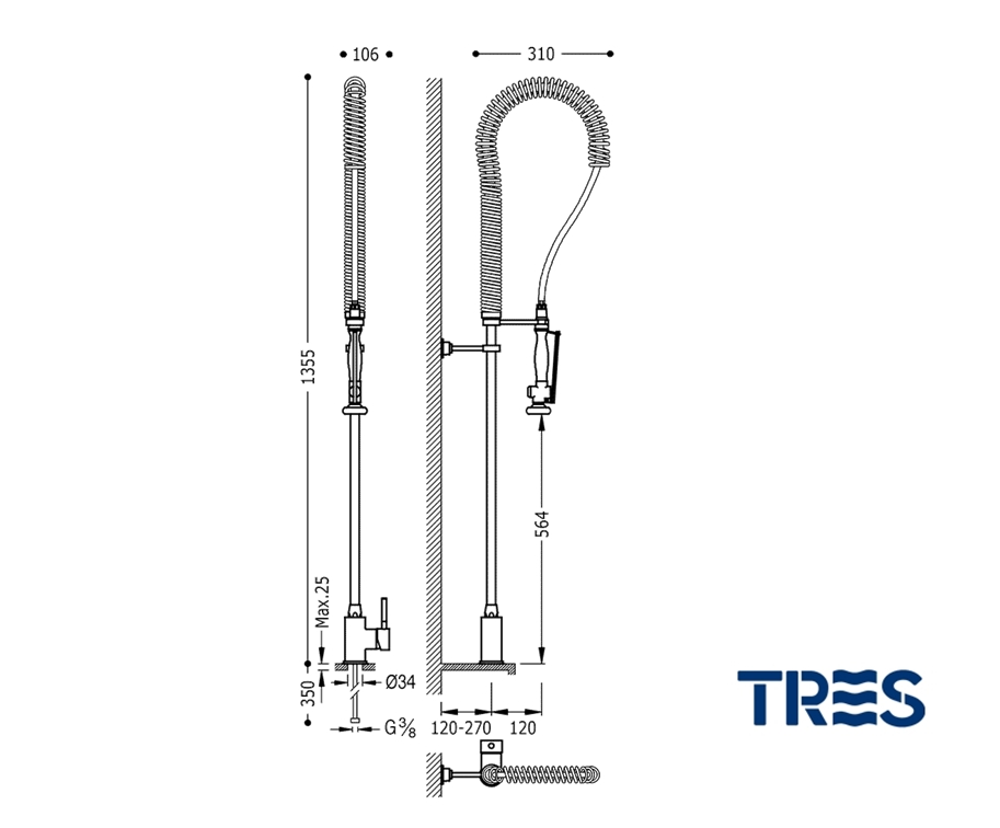 MONOMANDO COCINA EXTRAIBLE INDUSTRIAL TRES
