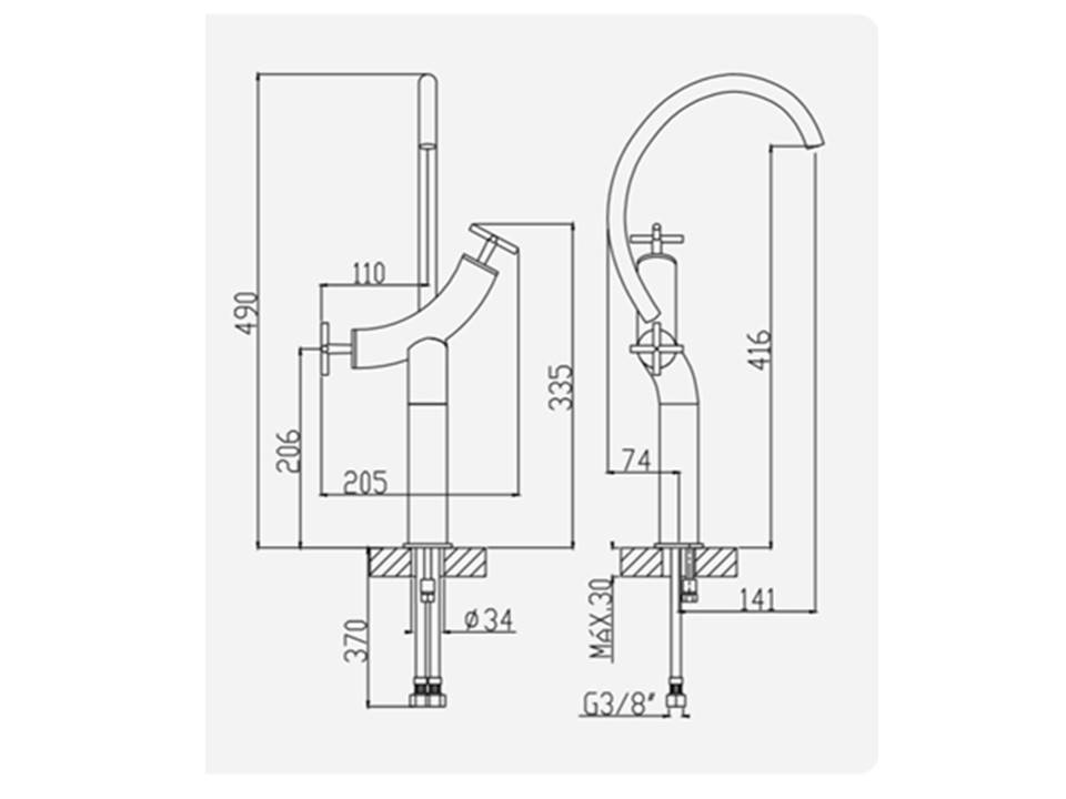 MEZCLADOR LAVABO CAÑO ALTO HERA BRUMA Ref 10621001