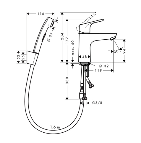 MONOMANDO LAVABO 100 FOCUS CON TELEDUCHA BIDE HANSGROHE
