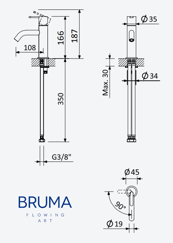 MONOMANDO LAVABO LEAF4 BRUMA Ref.1670014CR
