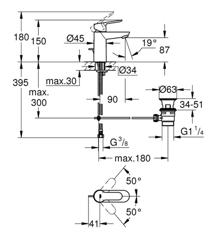 Monomando de lavabo 1/2" BAUEDGE GROHE ref.23330000