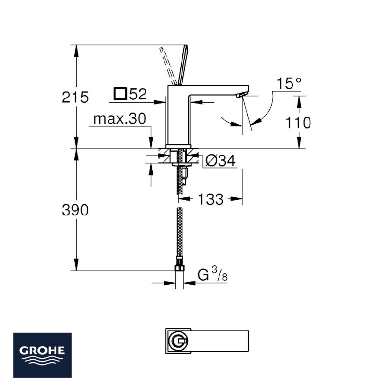 GROHE EUROCUBE JOY MONOMANDO LAVABO M