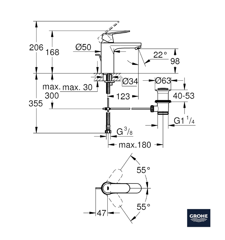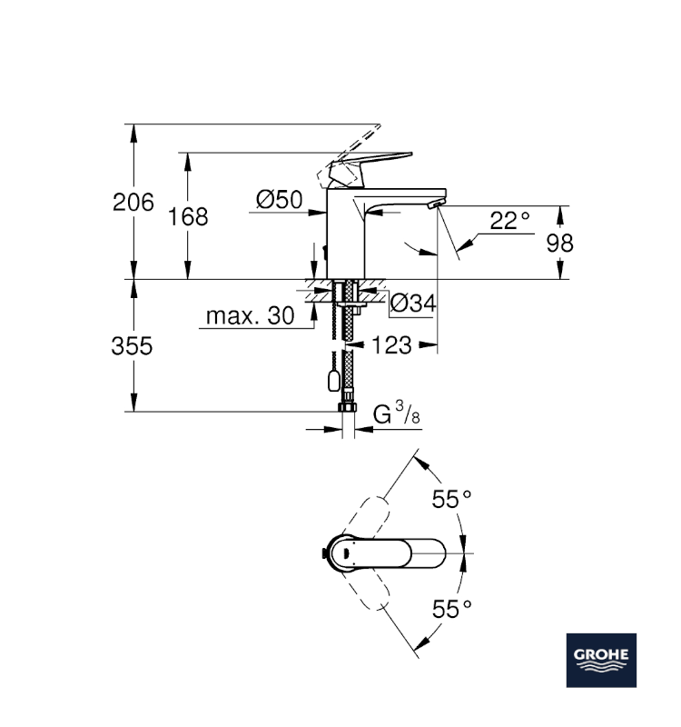 GROHE EUROSMART COSMOPOLITAN MONOMANDO LAVABO