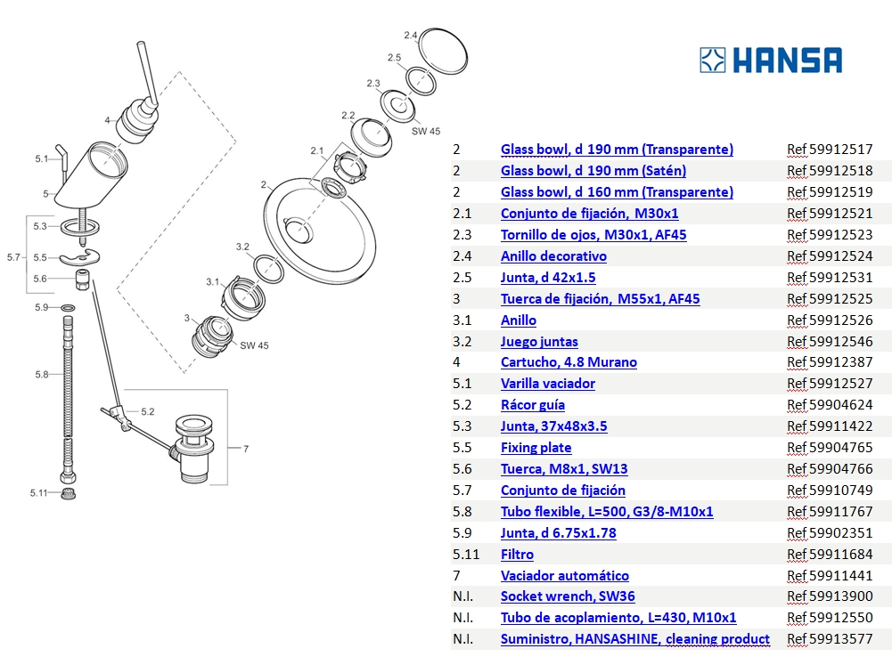 MONOMANDO LAVABO MURANO HANSA Ref.5609210178