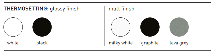 TAMBIEN DISPONIBLE en NEGRO MATE, BLANCO MATE, TERRACOTA, GRIS CENIZA MATE, ARCILLA y VERDE JADE