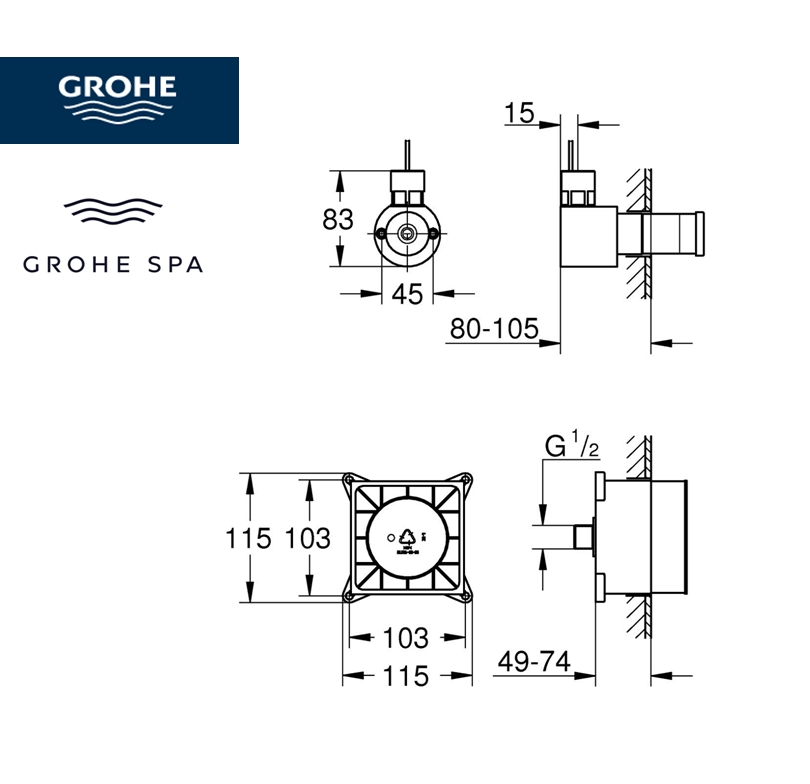PARTE EMPOTRABLE GENERADOR VAPOR F-DIGITAL DELUXE GROHE SPA Ref.29414000