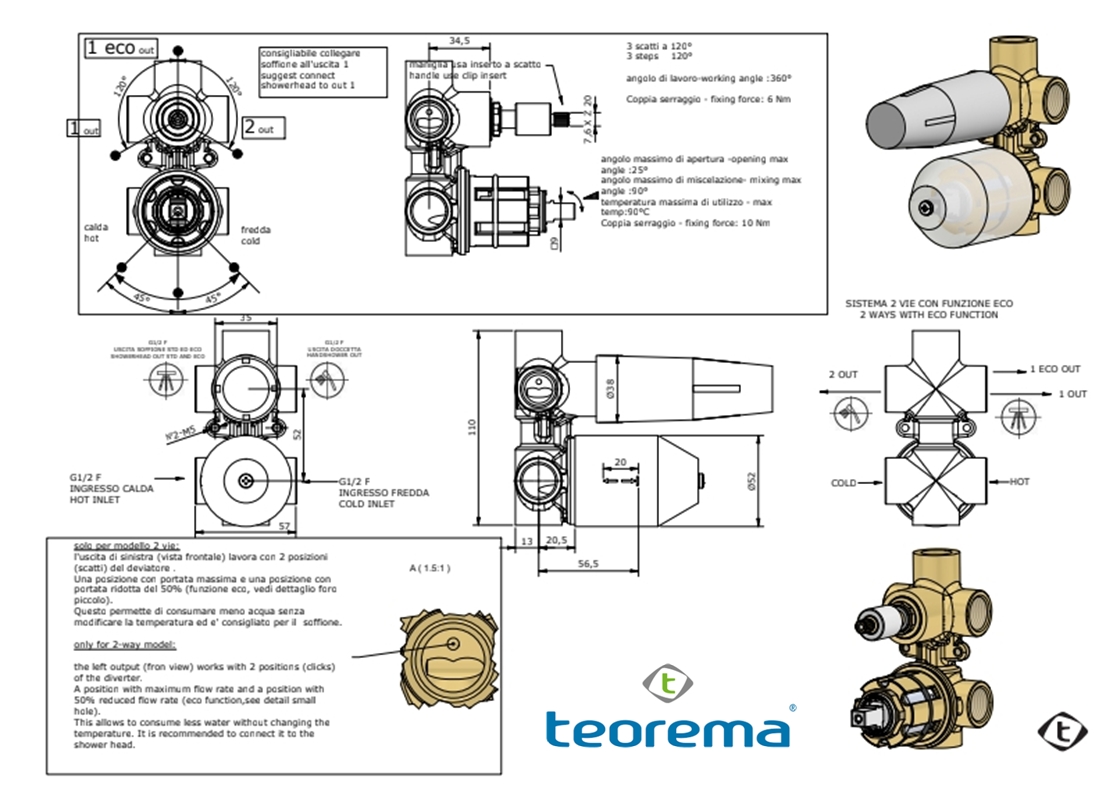 TEOREMA CUERPO EMPOTRADO MONOMANDO DUCHA 2 VIAS