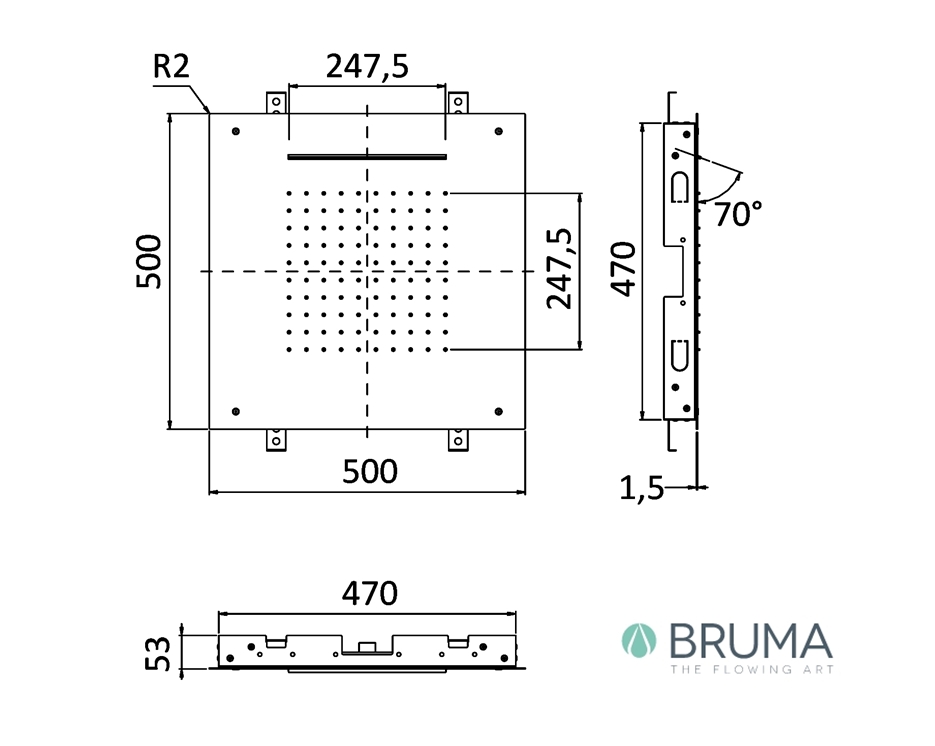 BRUMA ROCIADOR DUCHA CASCADA EMPOTRADO 50x50cm