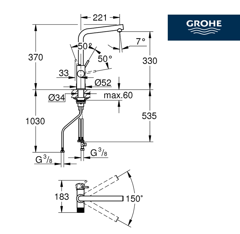 GROHE BLUE PURE MINTA MONOMANDO COCINA